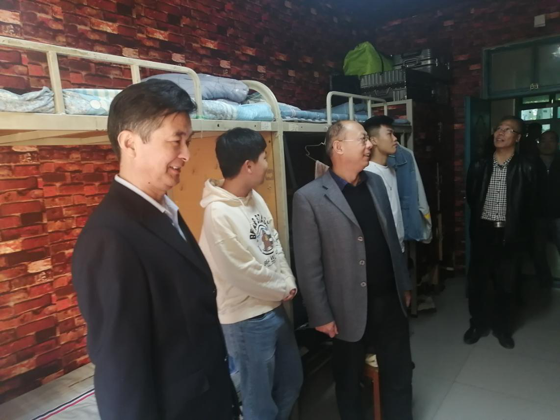 会后,李书记一行到我院学生宿舍进行检查指导,查看了学生宿舍安全环境及疫情防控相关工作,指出学生宿舍在按照疫情防控常态化要求进行管理,为学生创造一个安全健康的生活学习环境。