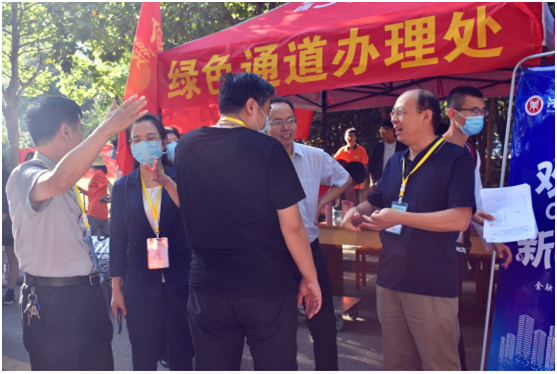 今年迎新工作在疫情防控常态化背景下展开,学院高度重视新生报到的各项工作,遵循“积极、稳妥、循序、安全”的工作原则,从校门外的疫情防控通道,到校内的新生报到处,全程有序引导新生报到。对于家庭困难的新生,我院开辟“绿色通道”,老师现场给新生讲解申请国家助学贷款、助学金等程序,帮助新生解决资金困难问题。 院领导在迎新现场慰问了工作人员和志愿者并对他们细致到位的工作予以充分肯定,还与报到新生亲切交流,鼓励他们在新环境中要尽快适应,树立远大目标,努力学习奋发有为。