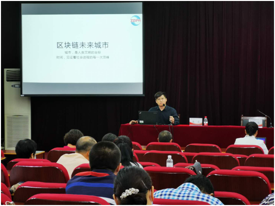 签约仪式结束后,金惠科技公司首席运营总监潘东先生为全体教师进行了一场报告会,报告会中介绍了区块链定义与发展,并对区块链在比特币和其他相关领域的应用现状与前景进行了全面的梳理与讲解,为全体教师带来了当前区块链的科技前沿。