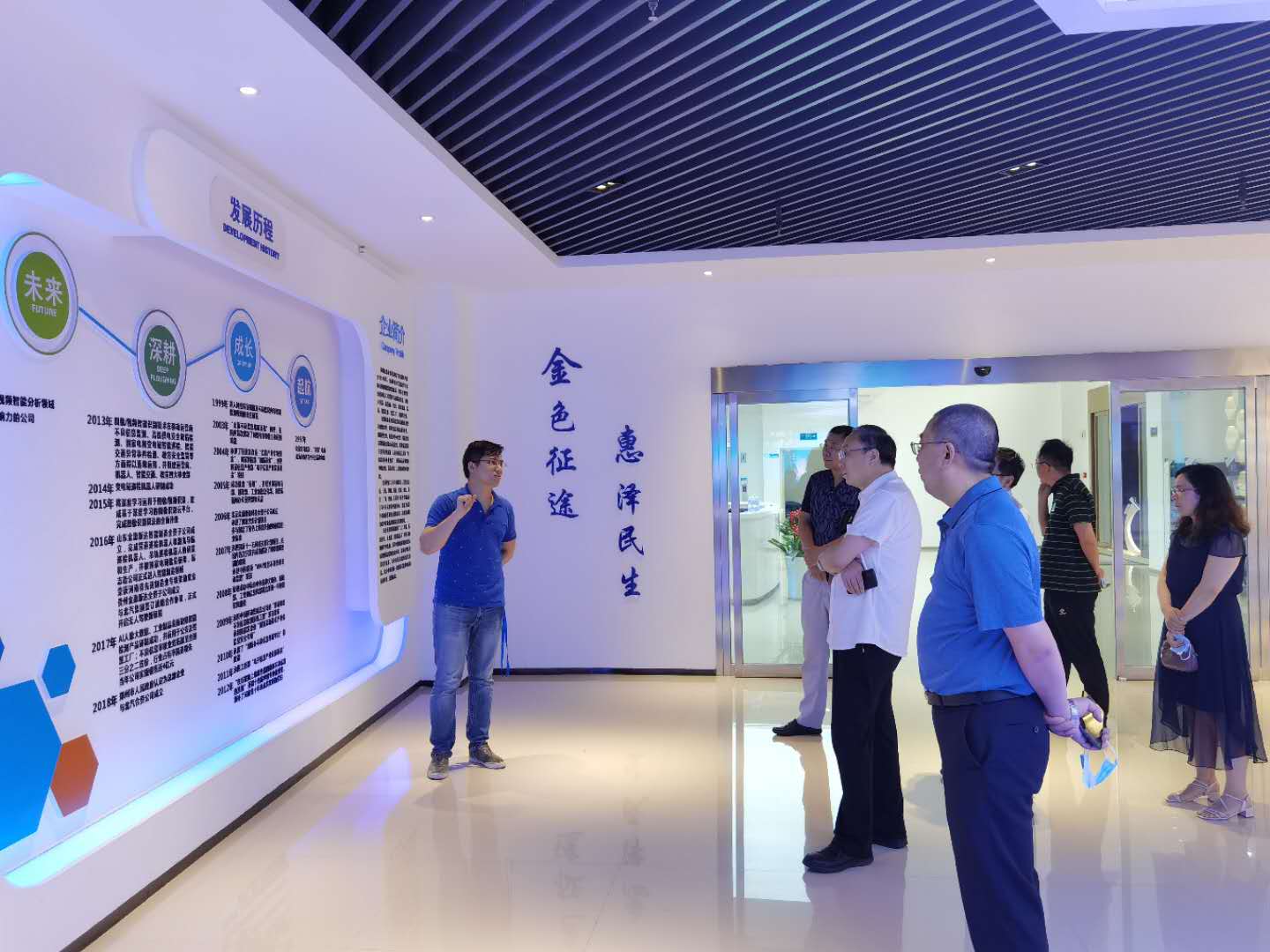 穆瑞杰参观了金惠科技的多功能展厅,金惠科技负责人对金惠二十三年的发展历程和产业布局进行了详细讲解,介绍了教育信息化、智能机器人等领域核心成果,并针对区块链技术及应用,区块链行业发展等方面进行了重点解读。校企双方对区块链技术在金融与会计领域应用做了深度交流与探讨。