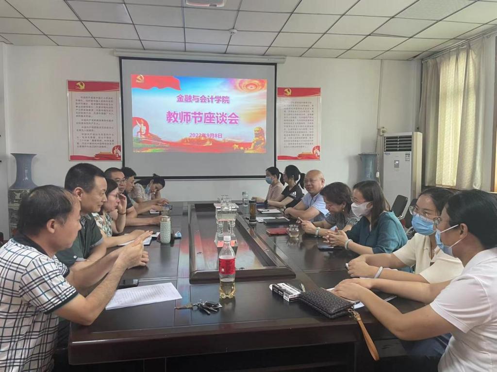 9月8日下午,在第38个教师节来临之际,金融与会计院在514会议室召开庆祝2022年教师节座谈会。会议围绕 “传承教育初心,聚焦教师发展”展开讨论,学院领导班子、各教研室和行政人员代表参加。会议由党委书记陈复昌主持。