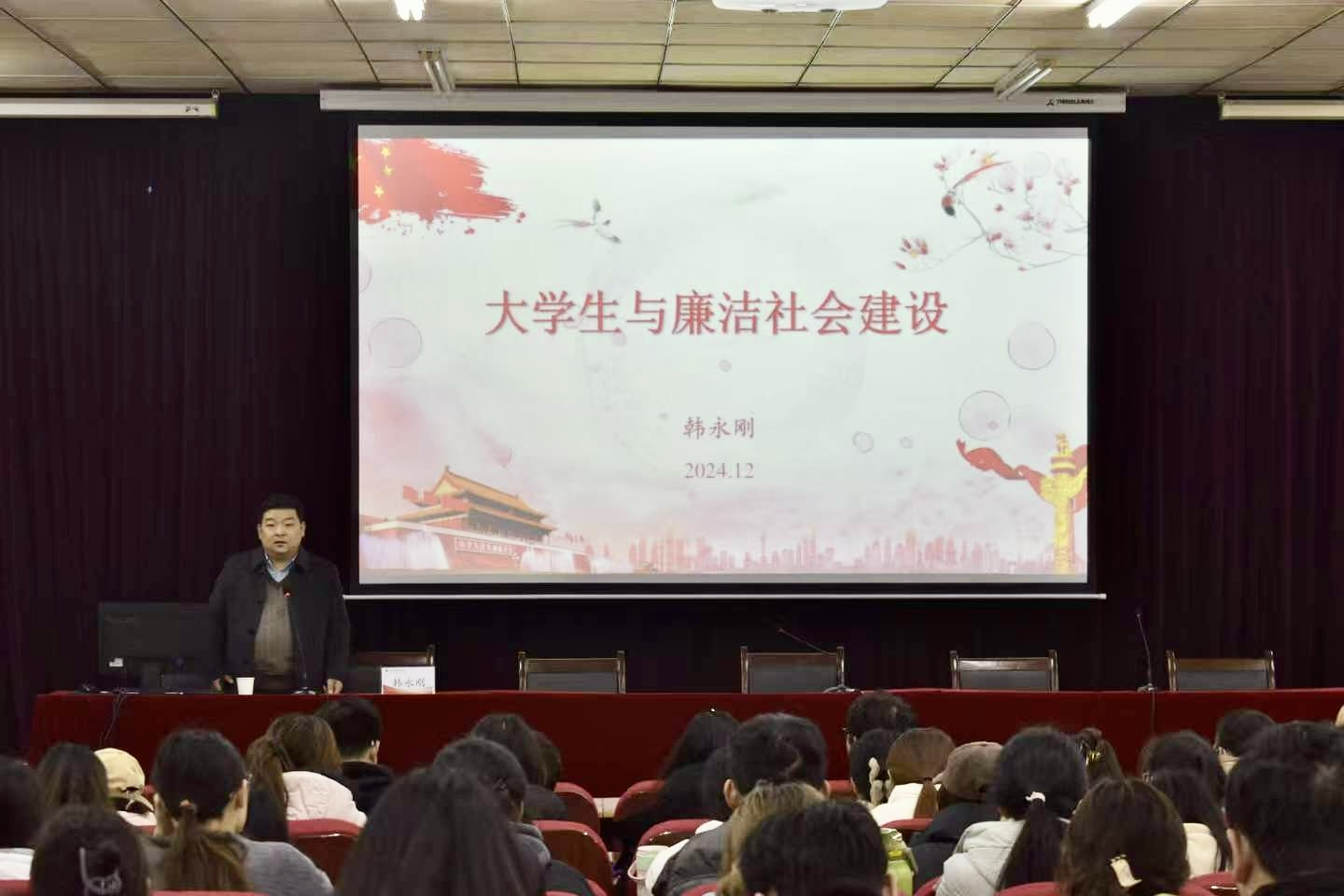 本次专题思政课,韩永刚书记以学习领会党的二十大、党的二十届三中全会精神关于党风廉政建设和反腐败斗争的新论断开篇,用大量详实的数据和实例回顾了党的十八大以来我党全面从严治党的坚定决心和反腐败斗争取得的成效。接着,韩书记讲授了对学生党员干部进行廉洁教育的重要意义,结合纪检监察工作实际就大学生如何做到廉洁修身指明了努力方向。他要求,要以习近平新时代中国特色社会主义思想和党的二十届三中全会精神为指导,以积极认真的态度和务实有效的行动组织开展好大学生廉洁文化教育活动,使廉洁文化真正入耳入脑入心,让廉洁教育结出丰硕成果。