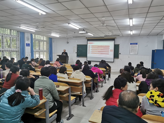为了把学习贯彻党的十九届四中全会精神引向深入,12月12日下午,williamhill英国中文在W107举办学习贯彻党的十九届四中全会精神宣讲报告会,宣讲会由院党委书记陈复昌主讲,院全体教工参加了会议。