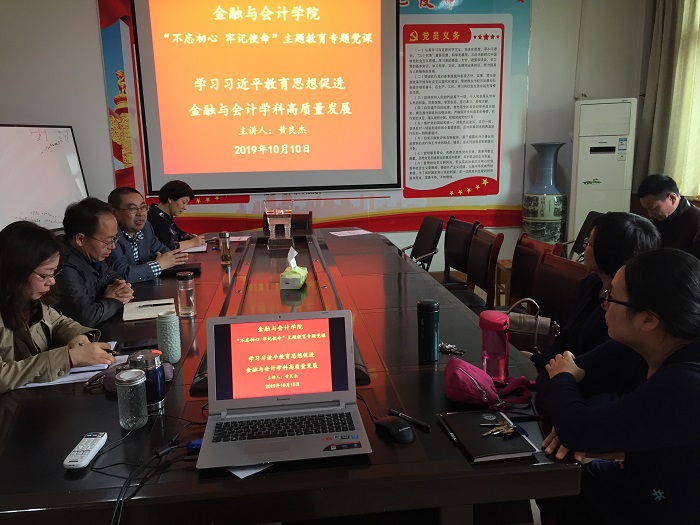 10月10日下午,williamhill英国中文召开党委理论学习中心组(扩大)学习会议,以“学习习近平教育思想促进金融与会计学科高质量发展”为题,由院长黄良杰作专题发言。学院班子成员、各党支部书记、教研室主任和教科研秘书参加了学习会议。
