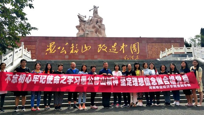 为弘扬新时期愚公移山精神为宗旨,培养毛主席提倡的“下定决心,不怕牺牲,排除万难,去争取胜利”的大无畏革命精神,增强学院党员的党性修养和干事创业激情。在建党98周年来临之际,七一前夕,金融学院党总支组织党员和教师代表30余人前往济源愚公移山红色教育基地,开展了以“不忘初心牢记使命,坚定理性信念做合格党员”为主题的的党日教育活动。
