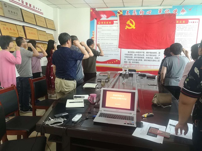 首先,正处级组织员赵桂珍书记带领全体党员同志举起右拳,面向党旗庄严宣誓,通过重温入党誓词,回顾入党初心,洗涤思想,增强党性修养,激发学习工作热情。