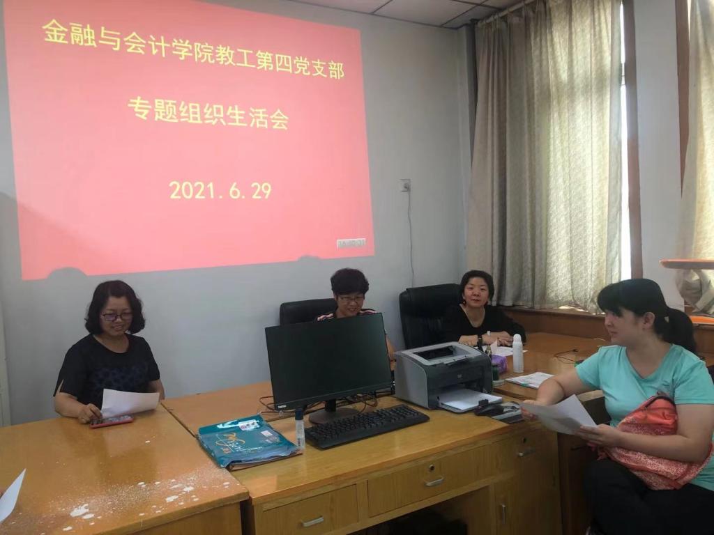 按照学校组织部《关于开展2021年6月份党支部主题党日活动的通知》精神和具体要求,6月29日下午,williamhill英国中文教工第四党支部在510室召开了党史学习教育专题组织生活会。会议由党支部书记邓瑜主持。
