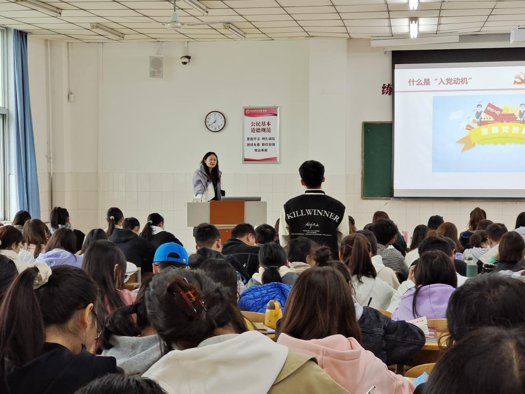 培训课上,葛老师从什么是入党动机,正确入党动机的内涵,端正入党动机的正确性,怎么端正入党动机四个方面展开讲述。首先,葛老师问大家一个问题:“为什么要入党”,引发全体入党积极分子的思考。接着,葛老师又具体向大家阐述了“入党动机”的内涵、端正“入党动机”的重要性以及“入党动机”不正确的五大表现。只有树立了正确的入党动机,才能有持久不衰的动力,才能够在日常工作和生活的各个方面,更加严格地要求自己。接着葛老师以亲身经历并结合课件,向大家讲述在日常生活中党员的一言一行。最后,葛老师结合时事,播放了一段郑州洪水的视频,带我们了解到在郑州洪灾面前,共产党员们不惧艰险,冲锋在前,深刻的诠释了中国共产党全心全意为人民服务的宗旨。
