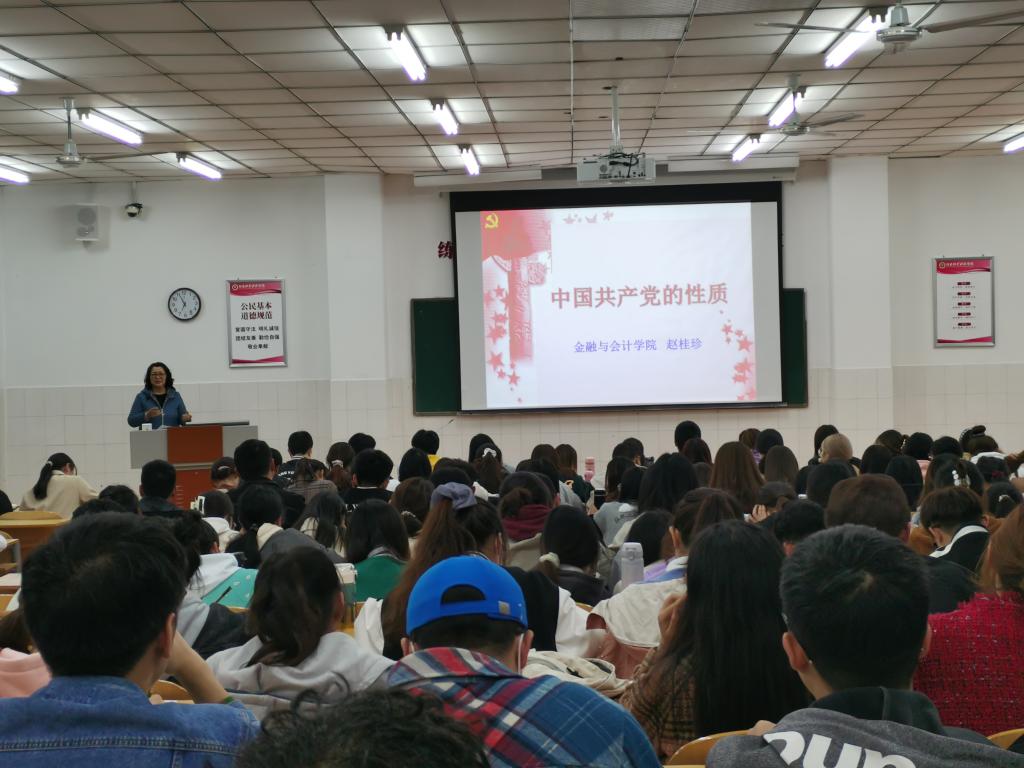 首先,赵老师以党政及党政的性质为本节课拉开了序幕,简述了中国共产党的诞生及其发展历程,并指出中国共产党的诞生是中国革命发展的客观需要,是马克思主义同中国工人运动相结合的产物。接着,从“两个先锋队”、“一个核心领导”和“三个代表”三个方面展开,详细阐述了中国共产党的性质。以李大钊、陈独秀等优秀共产党员的事迹为例来说明“中国共产党是工人阶级的先锋队”;以“国共合作”、“中国恢复联合国的地位”、“香港澳门回归”等来说明“中国共产党同时是中国人民和中华民族的先锋队”;以“一带一路”“基本社会主义制度的确立”等来说明“中国共产党是中国特色社会主义事业的领导核心”;以“南水北调”“互联网科技的迅速发展”来说明“中国共产党代表最广大人民的根本利益、代表中国先进生产力的发展要求”。在课堂上赵老师与同学们互动,一问一答调动了大家的积极性。最后,赵老师给所有积极分子在学习中提出了四个要求,简述为四个统一,希望同学们在学习过程中能够做到“坚持学习科学文化与加强思想修养的统一”、“坚持学习书本知识与投身社会实践的统一”、“坚持实现自身价值与服务祖国人民的统一”、“坚持树立远大理想与进行艰苦奋斗的统一”。