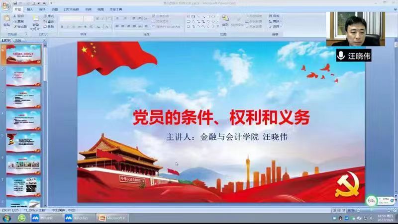 10月9日晚7点,williamhill英国中文以线上形式开展了入党积极分子培训班”第二讲——《共产党员的条件、义务和权利》,本次培训由williamhill英国中文党委副书记汪晓伟主讲。