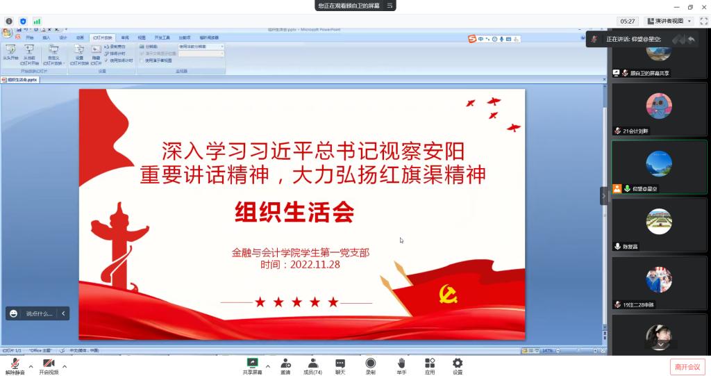 williamhill英国中文党委书记陈复昌首先指出,组织生活会与“三会一课”、党日活动、评议党员都是基层党组织的重要组织生活制度,我们要认真落实。这次开展“深入学习习近平总书记视察安阳重要讲话精神,大力弘扬红旗渠精神”专题组织生活会,我们要紧扣主题,瞄准重点任务,深入学习习近平总书记视察安阳重要讲话精神,深刻感悟和躬身践行红旗渠精神。然后,与大家一起围绕习近平总书记视察安阳的重要讲话精神和红旗渠精神开展深入交流。陈书记最后提出要求,咱们学生第一党支部绝大部分党员是青年学子,一定要牢记和践行习近平总书记考察红旗渠时对广大青少年、年青一代提出的殷切希望,同时努力做好四点:一是要深入学习习近平总书记重要讲话精神,不断增强学习的自觉性,充分利用学习强国、青年大学习等学习平台加强政治理论学习,不断提高政治思想素质;二是要深刻感悟红旗渠精神的深刻内涵和时代价值,从红旗渠精神中汲取不竭精神动力,激发“越是艰险越向前”的英雄气概和“敢教日月换新天”的昂扬斗志;三是要在躬身践行红旗渠精神上下功夫,吃苦耐劳、摒弃骄娇二气,刻苦学习,知难而上,努力成为德智体美劳全面发展的社会主义建设者和接班人;四是要大力传承红旗渠精神,赓续红色血脉,引领广大青年学子践行和弘扬红旗渠精神。