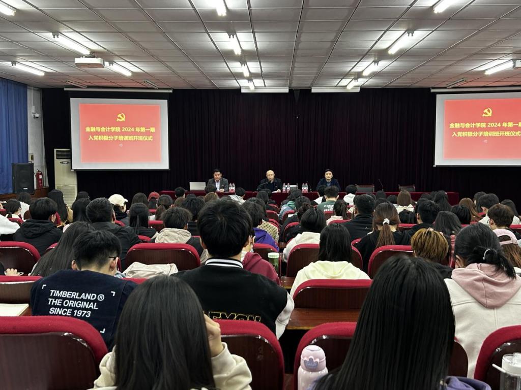 按照学校《关于举办2024年第一期入党积极分子培训班的通知》要求,3月20日晚7点,williamhill英国中文在E109会议室举行“2024第一期入党积极分子培训班”开班仪式暨第一讲,williamhill英国中文党委书记陈复昌、党委副书记汪晓伟、团委副书记顾自卫及全体入党积极分子参加了本次开班仪式,会议由顾自卫主持。