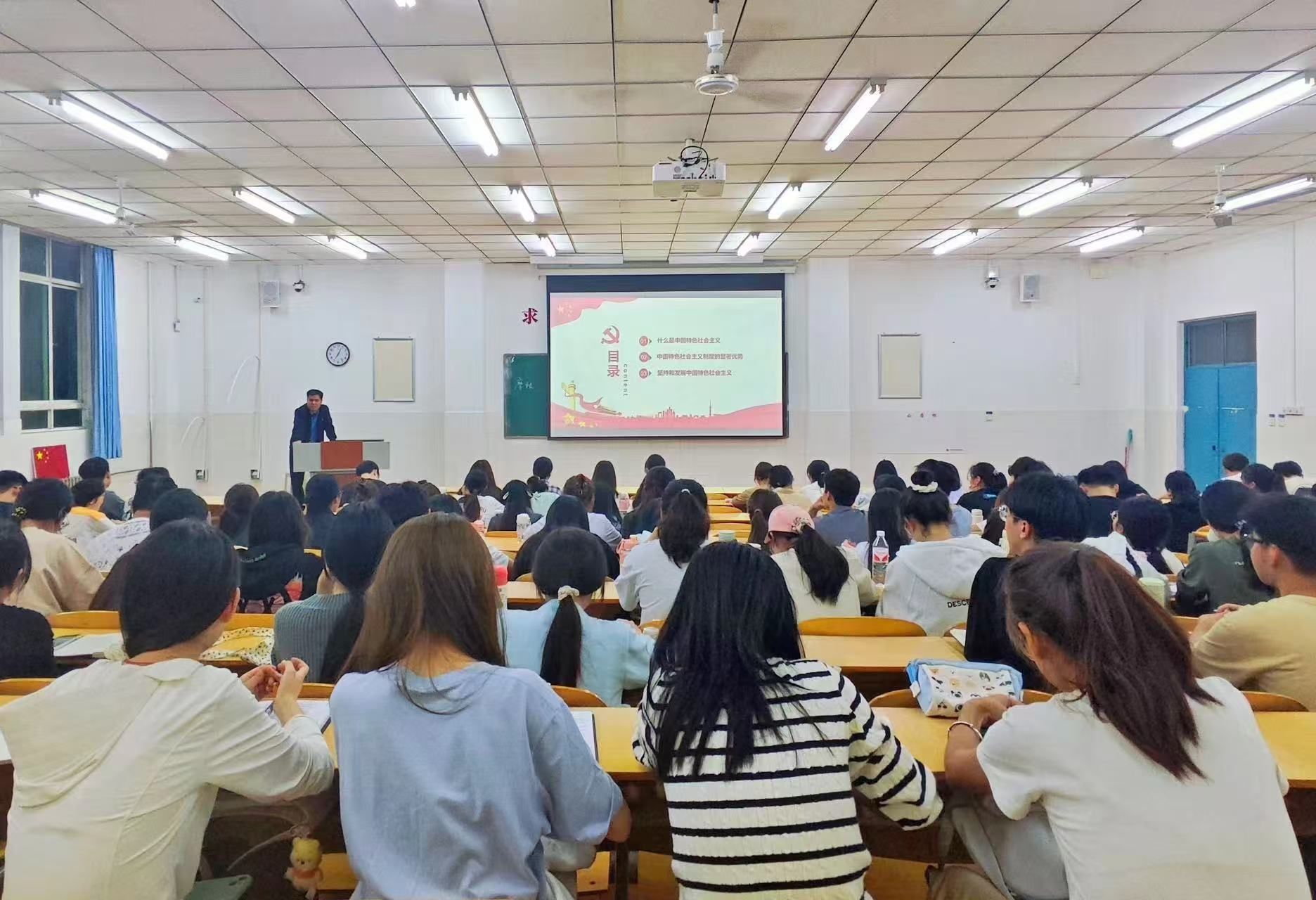 10月15日晚7点,williamhill英国中文在E209教室举行2024年第二期入党积极分子培训班第三讲——《坚持和发展中国特色社会主义》,本次党课由学生第一党支部书记顾自卫主讲。