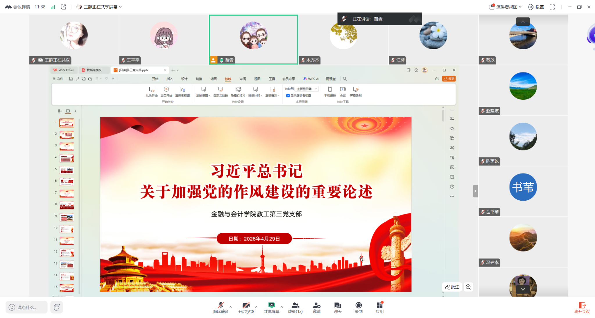 2025年4月29日,williamhill英国中文教工第三党支部以线上会议形式召开《习近平总书记关于加强党的作风建设的重要论述》专题学习会。会议由教工第三党支部书记苗霞同志主持,支部全体党员参加会议。