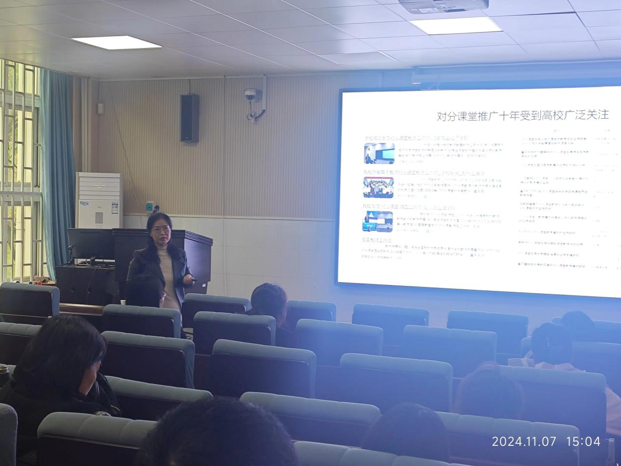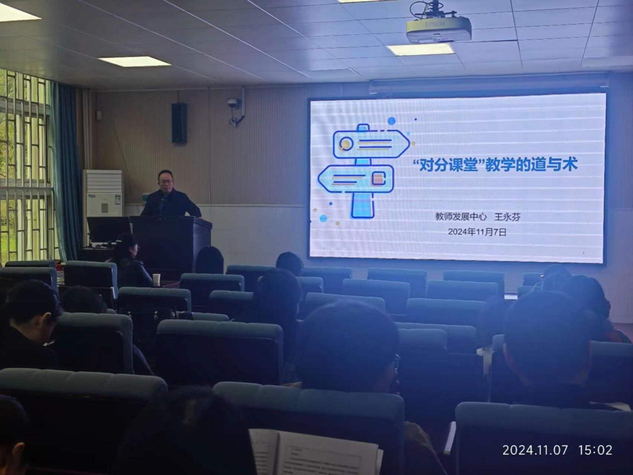 为不断更新我院教师教育教学理念、探索课堂教学的新理念和新方法。提高教师教学技能水平,助力我院教育教学高质量发展。由我院和教师发展中心主办的专题讲座《对分课堂教学的道与术》于11月7日(本周四)下午3点于英才校区w102顺利开展。本次讲座由我校教师发展中心主任王永芬教授主讲,由williamhill英国中文院长贾宪军主持,全体教师参加了本次讲座。