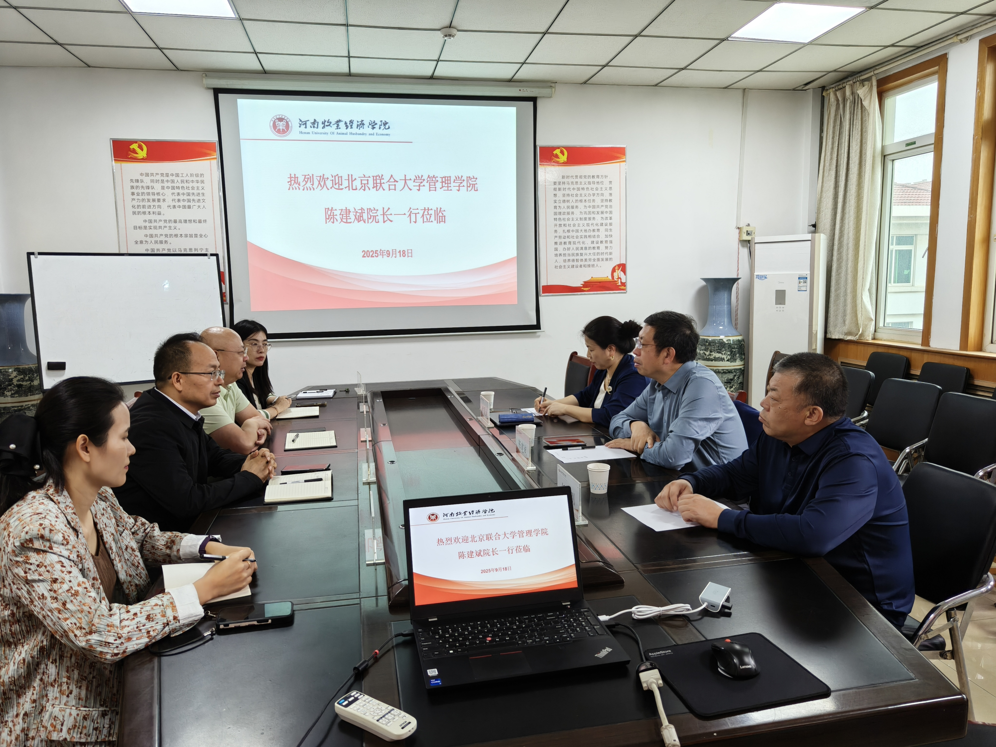 9月18日,北京联合大学管理学院院长陈建斌、财务管理系主任尹夏楠、科技与研究生培养办公室副主任任旭刚一行3人莅临我院,围绕研究生招生、学科建设、校际合作等议题展开深入交流。金融会计学院党委书记陈复昌、院长贾宪军、相关专业教研室主任陪同调研并参与座谈。