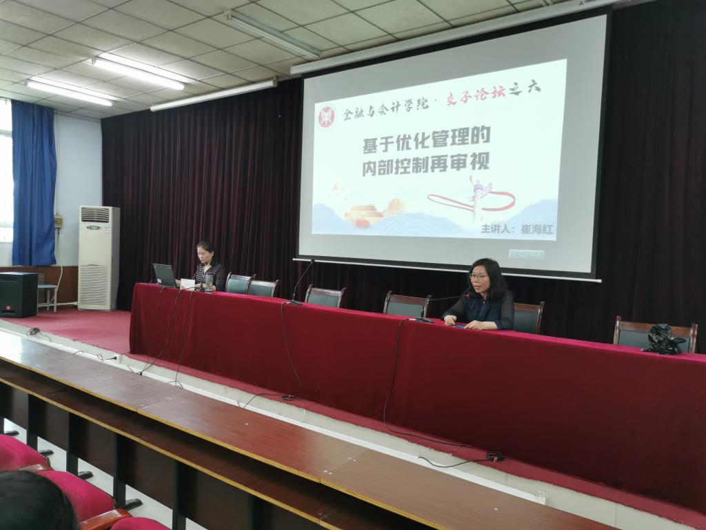 4月29日下午,williamhill英国中文在英才校区E110举办交子论坛,本次活动以《基于优化管理的内部控制再审视》为主题,由williamhill英国中文崔海红博士主讲,我院会计、审计专业的学生代表在场聆听,由williamhill英国中文副院长邵翠丽主持。
