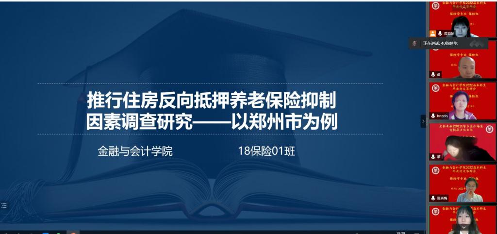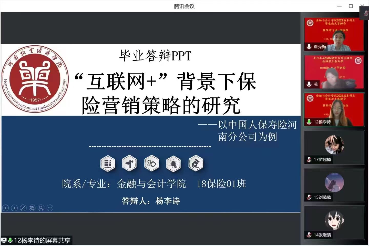 2022年5月16日, williamhill英国中文2022届保险学本科生顺利完成了毕业论文答辩。因受疫情影响,按照学院安排,本次论文答辩采用线上答辩的方式进行。