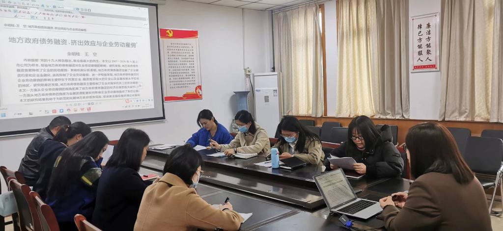 许玲玲博士对2022年发表在权威期刊《经济研究》的论文《地方政府债务融资、挤出效应与企业劳动雇佣》进行了详细解读,从论文题目确定、摘要撰写、引言撰写、理论分析、实证研究设计、变量设置、实证检验结果分析以及参考文献等诸多方面进行了讲解。内容详实,分析细致,有助于我院青年教师更好地理解高水平实证研究论文。许玲玲博士还指导青年教师进行高质量文献查找,与大家交流了学术研究心得,指出要组建团队,共同进行学术研究,才能不断实现高水平论文发表。