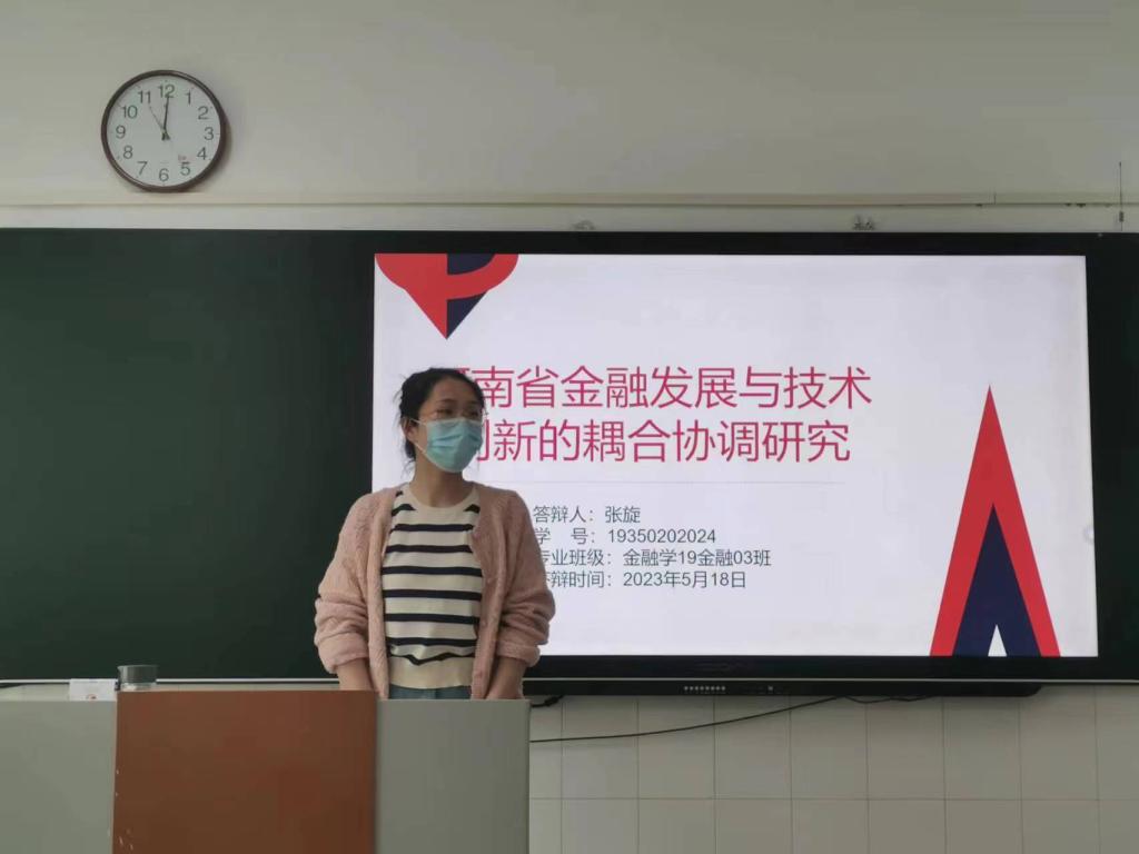 首先,答辩学生进行了毕业论文的PPT展示和论文阐释,针对自己的毕业论文开展情况和研究内容进行了介绍陈述,包括阐释了选题依据和研究意义、研究基本思路和主要研究内容、主要创新点及不足等内容。其次,论文答辩组指导教师根据论文撰写情况提问并提出修改建议,学生根据老师提出的问题予以回答;最后,答辩组指导老师根据学生毕业论文中文献综述、研究思路和内容,以及实证方法和技术分析等内容进行了综合指导,提出修改建议,为学生毕业论文最终稿修订完善进行了指导。