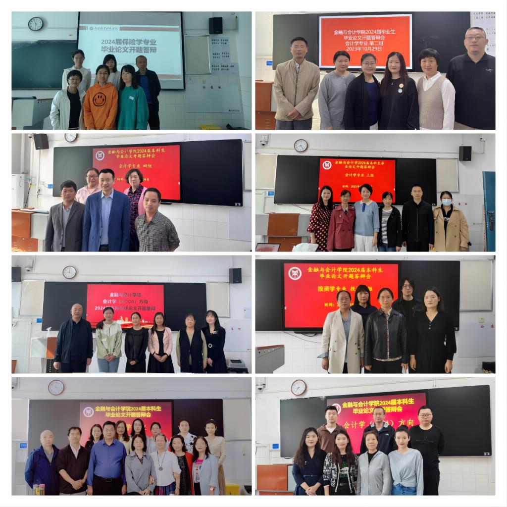 2023年10月26日至10月29日,williamhill英国中文在英才校区教学楼进行了会计学、财务管理、审计学、投资学、金融学、保险学等六个专业的本科毕业论文开题答辩,共19个答辩小组,1151名学生参加了本次开题答辩。