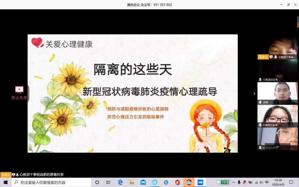 本次活动从4月起,共开展了“传统文化之中国古诗词”、“抗‘疫’还需防‘抑’”心理健康座谈活动、“强化安全防范意识,增强自我避险能力”、“悦读·新知·致敬”疫情专题之朗读比赛等不同环节不同形式的教育活动。虽然在疫情管理期间,我们同样在网络空间里,让同学们感受到了国与国之间的情谊,也被藏在诗句中坚定的精神所打动,更深刻的理解了中国传统文化的魅力。我们还以当前的疫情形势为背景,从正面引导疫情中同学们的学习、生活情绪为主要内容,学生创作“隔离的这些天”为题的PPT、视频、文章等,以线上网络直播形式开展,搭建网上沟通渠道,疏导不良情绪,引导同学们保持良好的心理状态。同时,在疫情暴发时期,我院也出现了一批青年志愿者在一线为当地人民服务,用自己的身体力行为抗疫做贡献。“学习‘我身边的志愿者’”活动的开展,通过收集身边一线志愿者的感悟体会,以文字或者视频的方式在微信公众号上进行宣讲,号召全院师生进行学习,有利于增强大学生的责任与担当的意识。