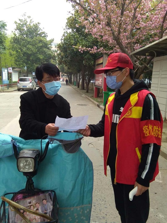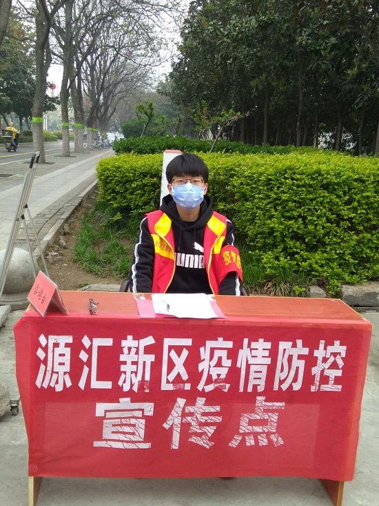 朱天同学用实际行动弘扬了“奉献、友爱、互助、进步”的志愿服务精神,活跃在防控一线。在他身上,我们看到了新的风采、新的力量。