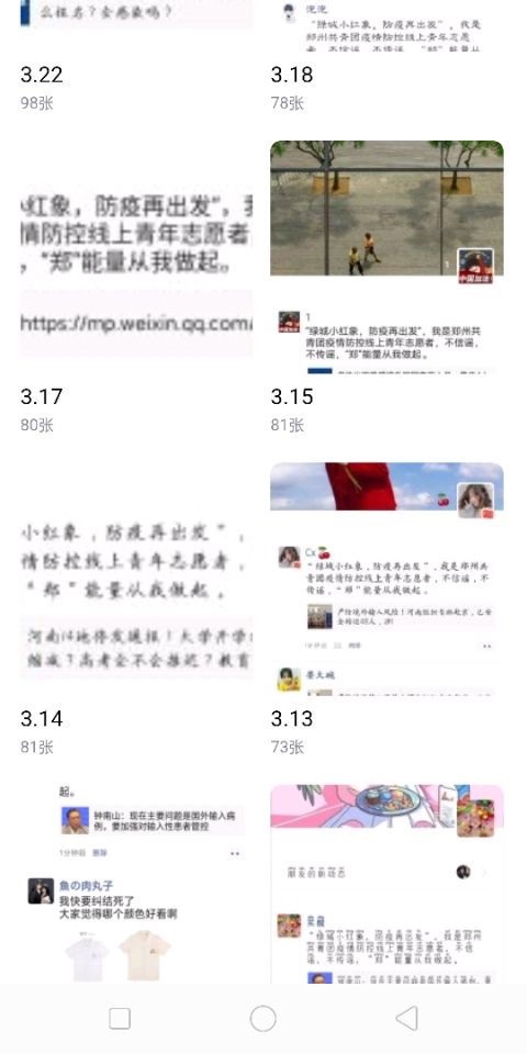 即使在家中,也要成为抗击疫情的一份子,她积极参加了在团市委的领导下开展的郑州共青团疫情防控线上青年志愿服务活动,通过转发科学客观最新的官方消息,破除谣言,安定人心,让“郑”能量更广泛更迅速地渗入到社会去。每一天她都关注新发布的经官方证实的疫情防控知识,仔细阅读全文,随后将其转发至朋友圈中。这段期间,许多谣言在各种群内被人们无意转发,动荡人心的不实信息和错误的防疫知识在老年人居多的聊天群内出现频率特别高。每当她遇到谣言,她第一时间将谣言举报,接着积极向长辈们说明情况,并用通俗易懂的方式向他们讲解真实的疫情情况和正确的防疫方法。在这个需要万众一心共同科学抗击疫情的特殊时期,肆意传播的谣言无疑对抗击疫情相关工作造成极大的威胁。广大群众作为信息的接收者,有时不能很好的辨别信息的真假,造成在无意中加入到散播谣言的队伍中去,因此击破谣言的线上工作非常重要。