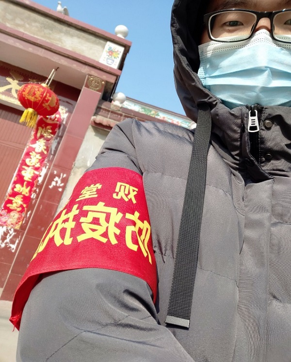 当新年来临,一场新型肺炎席卷而来,随着各省一级响应,我国上下齐心协力共抗新型肺炎。我们的村庄响应号召也设立了村级卡点,村中更有志愿者开始在村中自发的担任起志愿者,作为当代大学生,作为社会主义的接班人,他认为自己更应该做一些力所能及的事,有幸成为了观堂乡防疫执勤志愿者中的一员。他的工作是对于在村中未能十分重视此次肺炎的群众做好宣传、解释、帮助、学习。让村庄不因个人或者组、队、村不够重视,而让新型肺炎有可乘之机。在他看来,作为村中的执勤志愿者更应该先从自身开始做好防控工作,从而更好的帮助村子里的人,在大家面前应舍弃小我。响应号召,听从党的领导,为我国做贡献。中国加油!
