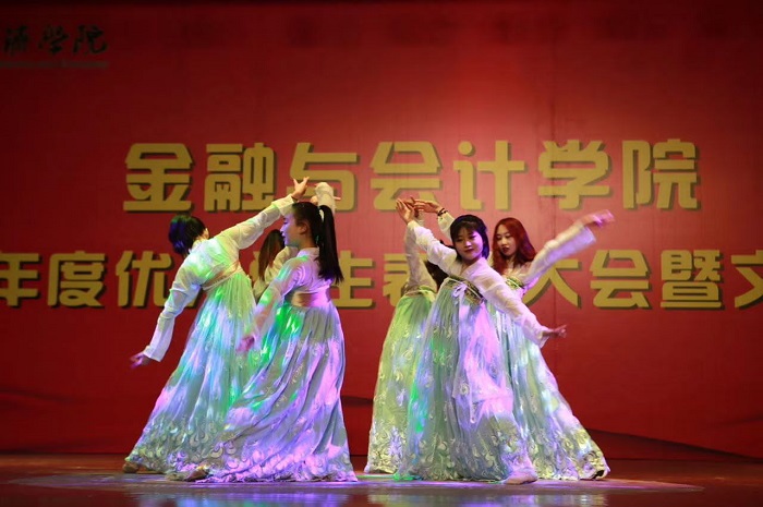 活动伊始,黄良杰院长致开幕词,首先他对获得表彰的优秀个人和先进集体表示祝贺,接着介绍了williamhill英国中文在师资力量、科研水平和管理能力等方面取得的成就,这对同学们的教育、培养、发展提供了有效的保障和极大的激励,激发了学生们的学习兴趣,为学生们树立了信心和指明了学习方向。接着,文艺汇演在具有青春活力的啦啦操《闪灵风暴》中拉开帷幕,节目三句半《歌颂祖国》表达了对祖国70年风雨征程中取得伟大成就的赞美之情。汇演节目形式丰富,表演精彩纷呈,让全场师生沉浸于中国传统文化艺术和大学生青春气息的熏陶感染之中。