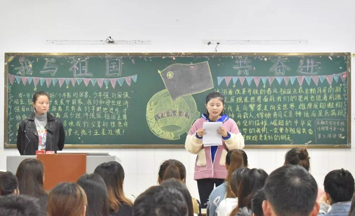 为庆祝中华人民共和国成立70周年,回顾祖国的峥嵘历程,增强广大学生的爱国热情,2019年10月9日晚7:30,我院举行了以“我与祖国共奋进”为主题的团课活动,17、18、19级共11个班级参与了本次活动。