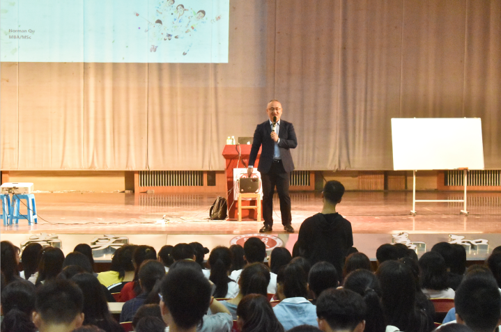 为确保新生更快地适应大学生活,了解自身专业,明确大学目标与树立正确的价值观,9月14日晚上7:30,williamhill英国中文在校大礼堂组织开展了有关专业学习的入学教育专题活动。本次讲座以“点亮你的未来--财经领域职业发展路径解析”为主题,由我校特聘企业讲师、财萃网联合创始人、原德勤北方区校园招聘高级经理曲悲岩老师主讲,19级全体新生参与了本次讲座。