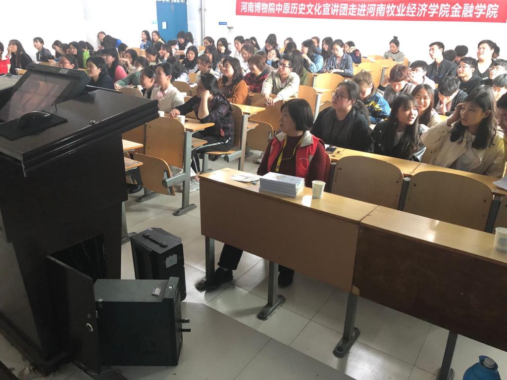 首先,闵红老师为大家介绍了河南博物院的基本情况。接着,闵红老师以刀币为切入点正式开始了以《货币文明》为主题的讲座。整个宣讲过程中,闵红老师采用播放幻灯片、互动问答等形式向同学们介绍了从商周到明清时期中国古代货币的发展。宣讲主题内容结构清晰、逻辑严谨,融知识性、艺术性与趣味性为一体。“货币与钱币之间有什么关系”、“我国最初的货币形态是什么”,现场同学边听边提出疑问,老师一一解答,老师妙趣横生的讲解获得了同学们一次又一次掌声。宣讲课程以点带面,从货币文化一点出发,揭示了整个中原文化和华夏文明的向心力、辐射力,给同学和老师以震撼。宣讲结束后,同学们纷纷表示要利用周末和节假日,走进博物馆,去传统文化遗产中找灵感,做优秀文化的传承人,为历史和当代艺术融合发展做出努力。
