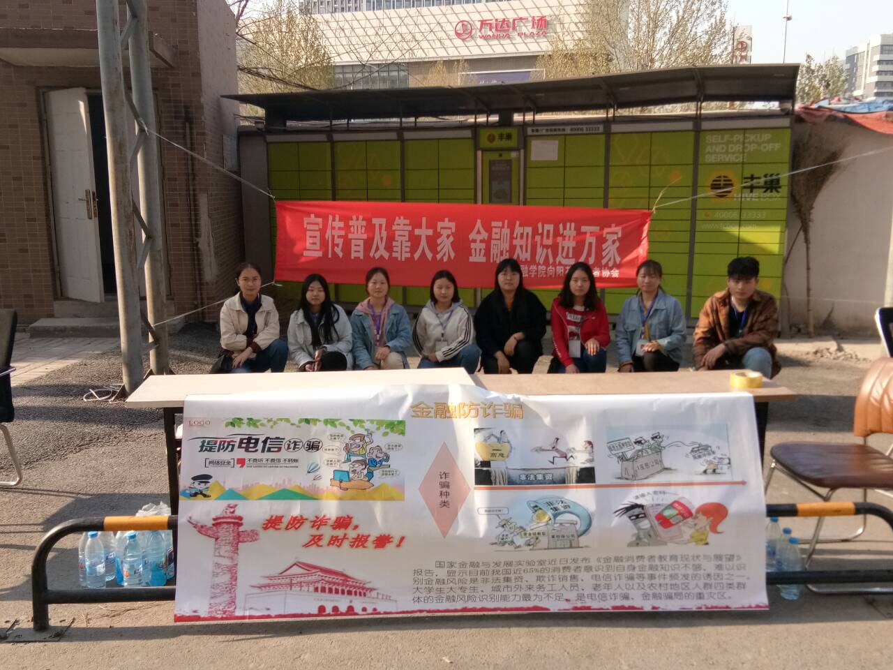 为树立金融法制观念,增强社会公众对金融知识的普及,帮助居民树立科学理财意识,提升自身社会实践经验,金融学院组织金融知识小队走进社区,前期,通过活动海报、金融知识宣传单、条幅、理财宣传册等让居民了解到金融防诈骗知识。活动期间又开展了金融知识讲座,以"小心掉入这些'坑'"为主题,向居民普及金融知识,使其了解包括银行卡、理财服务、非法集资、金融诈骗等风险性业务;以“理财就在您身边”为主题,介绍了科学的理财规划、各类理财投资工具的特点,让居民树立科学的理财观念,进行科学投资。讲座结束之后,学生们还在社区广场帐篷处向社区居民提供了咨询服务。对咨询人员进行了一对一的金融知识讲解、网络移动支付骗局、真假人民辨别等内容;并向居民发放宣传单页,为咨询人员解答疑惑,一致得到了居民的欢迎和好评。