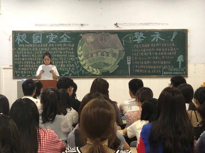 营造校园安全氛围,创造温馨学习环境。校园安全关乎每一位同学的切身利益,应从每一个人做起。为了增强各青年团员的安全防范意识,提高安全防范能力,创建平安校园,我院于2018年6月21日晚在教室A202-204,B111、B113、B115、B117-118组织17级全体团员进行了“校园安全警示教育”主题团课活动。