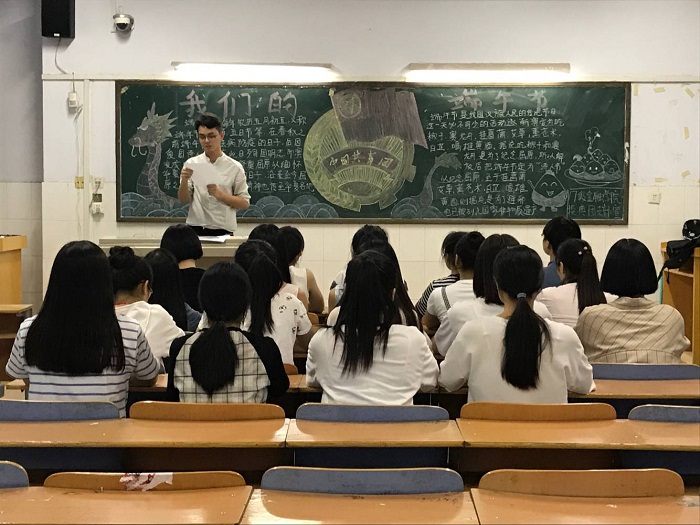 各团支部积极响应号召,紧紧围绕主题,选择材料,精心设计板报内容。充分调动团员们的积极性,完成活动准备工作。团课开始前各个团支部团员统一佩戴中国共青团团徽并高唱团歌,展现当代青年昂扬向上的精神风貌。其中证券一、二班团支部将端午节的由来,习俗及意义等简明扼要地利用PPT展示的方式分享出来,让各团员真正了解端午节认识端午节。保险一、二班团支部则采用演讲的形式,学习了屈原爱国爱民,宁死不屈的伟大民族精神和他高尚的人格。呼吁各青年团员学习屈原的精神,树立远大理想和报复。此次团课活动中,各团支部认真学习,收获满满。