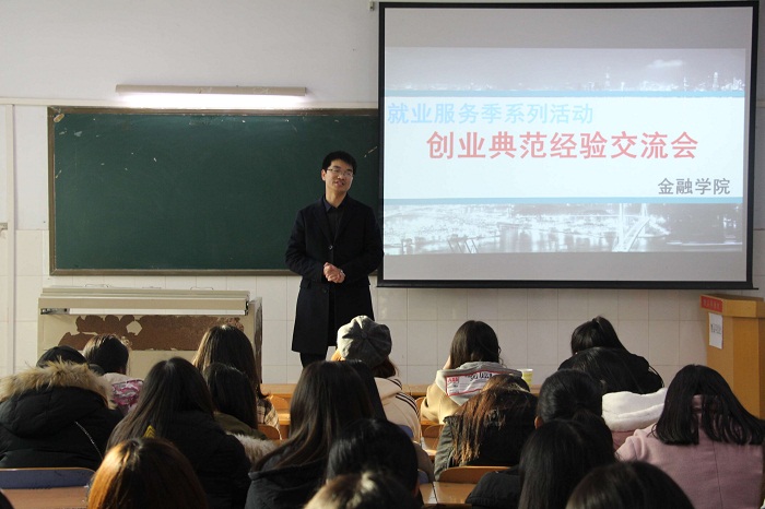 为激发学生创新创业热情,加强学生对创新创业的认知,增强学生的创新创业信心,作为毕业生就业服务季活动之一,金融学院于12月22日下午在A115教室举办了毕业生创新创业经验主题交流会。此次活动邀请我院2013届毕业生、河南塞邦软件科技有限公司总经理张雪山作创新创业经验交流,吸引了一批热衷于创新创业的毕业生积极参与。主题交流会由2015级学生辅导员申作光主持。