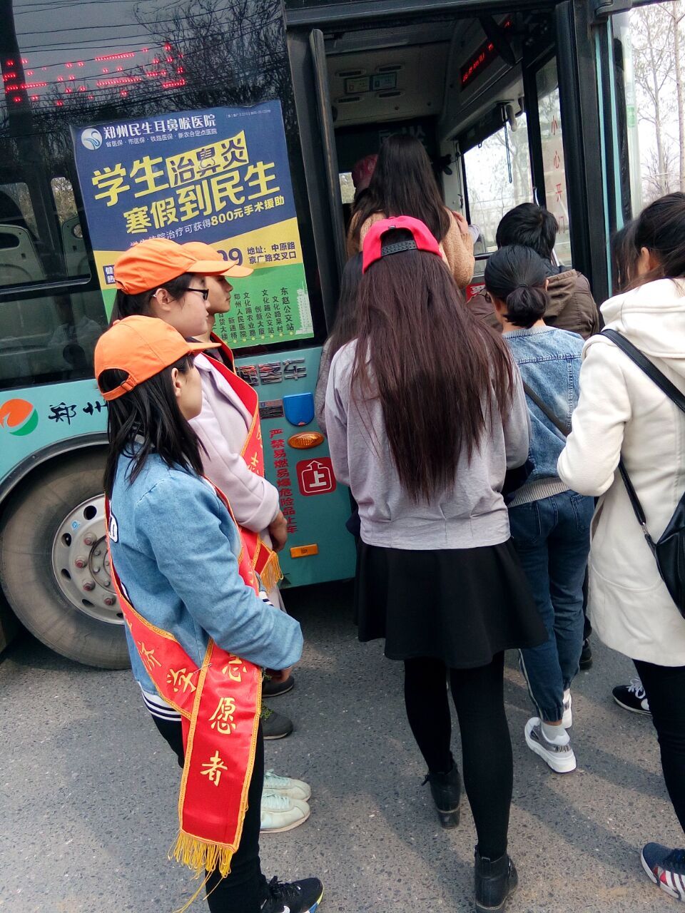 在文化路与英才街公交站台,志愿者们统一佩戴小黄帽和礼仪绶带。当每一辆公交车到来的时候,乘客们一拥而上,争抢而无序,面对相当大的人流量,同学们克服困难,经过与公交司机的沟通,与乘客的配合,乘车秩序有了很大的改观。服务过程中,志愿者们努力以友好的态度提醒乘客们自觉排队上车,向乘客们很好的宣传了文明出行、安全出行的好处和意义。