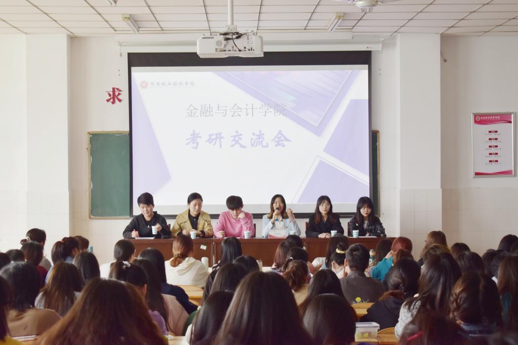 交流会伊始,邓桐玲老师简要讲解了大学生考研现状和财经相关专业的考研情况。接着,由五位有不同考研经历的学长学姐为同学们讲授经验,他们结合自己的考研经历详细的给同学们讲解了读研的必要和在备考期间应注意的问题,包括考研各科的复习方法、考研信心的树立、考研计划、备考心态的调整、生活饮食习惯、作息时间安排,以及有关选择专业方向和复试等方面的一些心得以及具体科目的学习方法和择校选择等,为同学们以后考研提供了借鉴和指导。在最后的提问环节中,同学们积极踊跃的提出自己关于考研的疑问,学长学姐们都耐心细致地一一解答。在大家热情的提问中,此次考研交流会圆满结束。