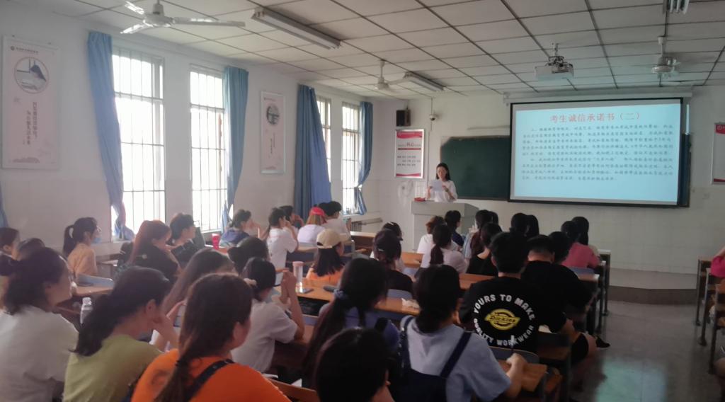 为确保考试安全、防范作弊犯罪、进一步净化考试环境,按照上级招生管理部门要求,我院于2021年6月1日下午14:30对专升本考生进行了考前诚信教育和“无声入场”模拟演练。本次演练由我院专升本负责老师万心悦、专升本班级辅导员邢珊珊和原晨光老师共同组织,全体专升本考生参加本次模拟演练。