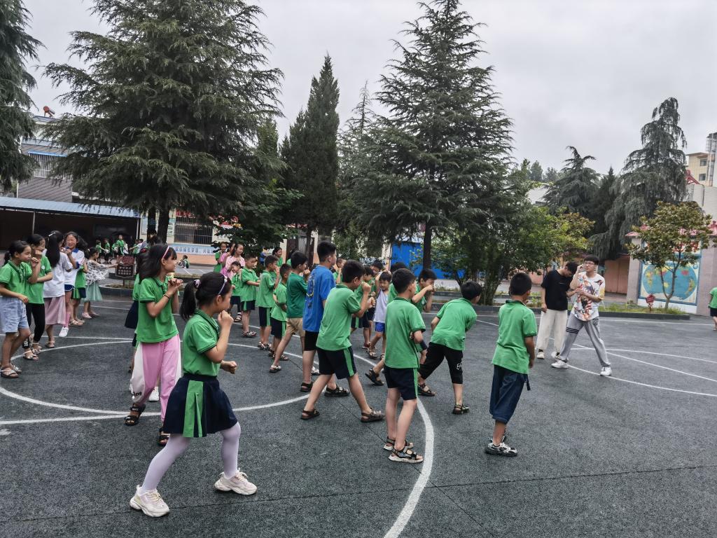 中午老师们休息整顿后,提前来到校园迎接孩子们的到来。
