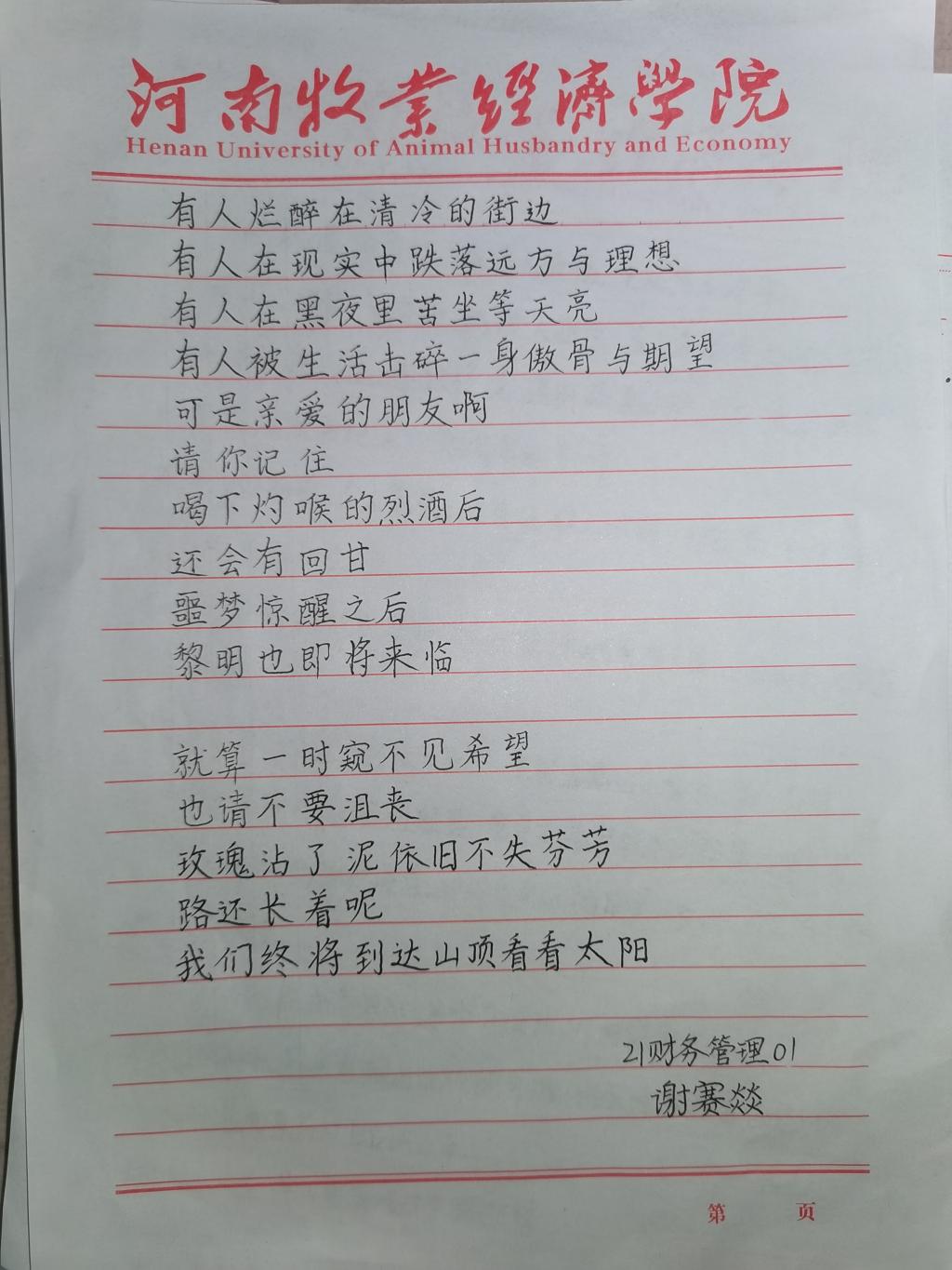 中国书法,字里千秋。为提高学生们的艺术修养与审美情趣,弘扬中华优秀书法文化,williamhill英国中文心教部于十月二十九日推出为期三天的“关爱心灵,秀出自己”线下活动。此次活动面向我院全体学生,在同学们一幅幅气韵贯通的书法作品中,我们深切地感受到了他们昂扬向上的斗志与积极乐观的人生态度。