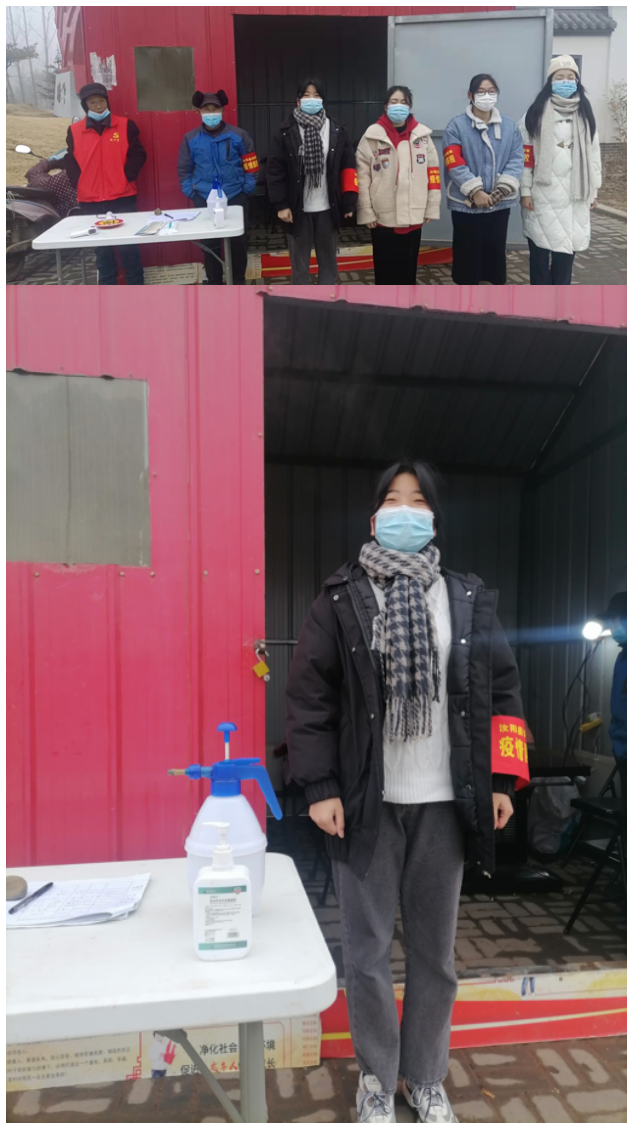 “志在心中,愿在行动”,尽微薄之力,不负青春,不留遗憾!牛亚丹同学积极响应家乡洛阳市汝阳县疫情防控的号召,报名志愿者活动,为家乡疫情防控贡献出自己的力量。她在村干部的领导下,带上袖章,戴上口罩,在主要十字路口,进行值守,对村内来往车辆进行登记和盘查。同时为村里外来人员进行信息登记,并测量体温。她相信我们一定能奏唱胜利的凯歌,吹响平安的号角!