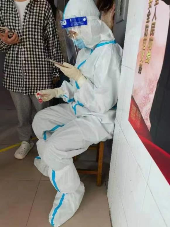 5月6月晚9点,正在9号楼挨个走访宿舍的张珂瑜老师,突然接到9号楼要封闭管理的通知,她立刻稳定了班里同学情绪,告诉学生:“别怕,我也在”。在封闭管理这段时间,多数晚上都是在等待核酸检测等工作通知中焦急度过,生怕不能及时通知到学生,同时还有统计工作,等放下工作准备入睡时已是凌晨一两点,第二天不到7点就得起床把饭菜送到每个宿舍门口,等学生们核对无误后,才能安心吃饭,那时饭菜也都凉了......在封闭管理的第一天,有幸变身一次“大白”,认真扫码登记,等结束时已是下午两三点,还没顾上得吃口中午饭,第一批中药就已经来了,她又马不停蹄的投身于发放中药。除此之外,她还要精准传达学校疫情防控措施,挤时间创造条件指导毕业生论文。