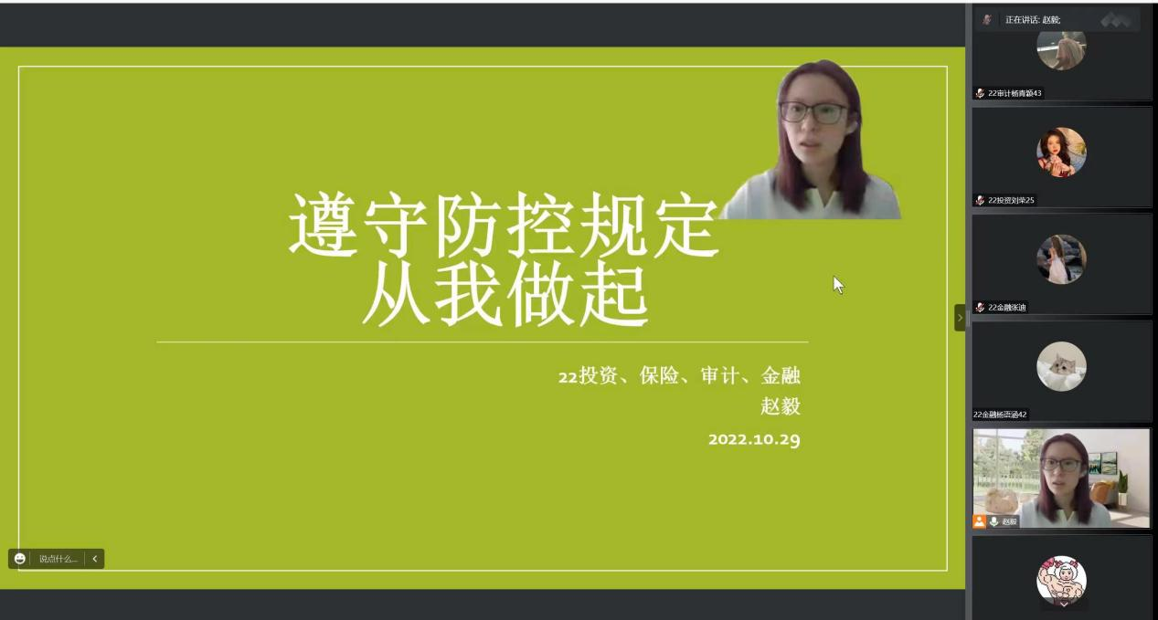此次主题班会通过对法规法纪教育、疫情防控教育、学生行为规范教育以及思想政治教育,引导学生理解、配合学校各项疫情防控有关政策,有利于我院进一步做好校园疫情防控各项工作,切实加强疫情防控期间学生思想政治教育,筑牢疫情防控的思想防线。
