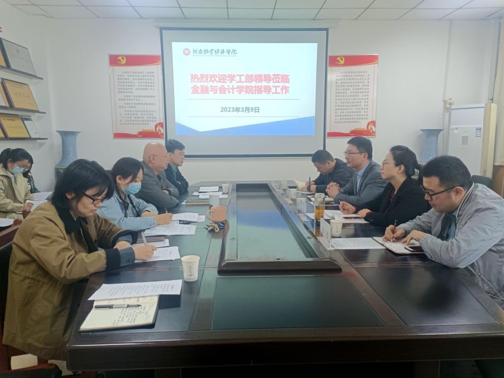 首先,陈复昌书记对学工部领导一行莅临指导工作表示欢迎,对学生工作部一直以来对学院学生工作的指导与支持表示感谢。接着,陈书记结合学院实际及学生专业特点,详细介绍了我院在学生政治思想教育、安全稳定、学风院风建设、校园文化建设、社会实践等方面工作的开展情况、主要做法及发展思路。表示我院将继续在学生工作部的领导下,紧紧围绕立德树人根本任务,强化学生思想引领和理想信念教育,教育、管理、服务好学生,真抓实干,守正创新,不断提升育人成效。副书记汪晓伟就学生工作中存在的具体问题及建议与学工部领导进行了深入探讨。与会其他老师分别就具体工作中出现的重点、难点问题进行了汇报交流。