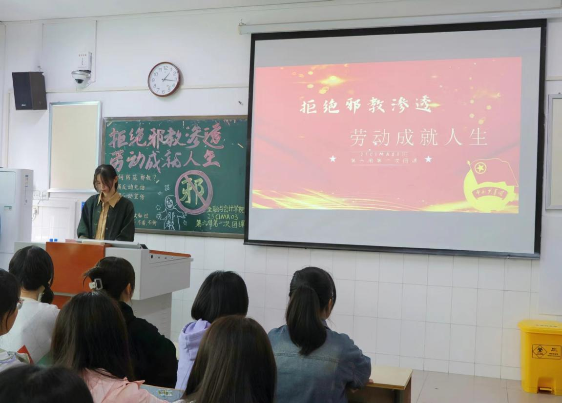 “功崇惟志,业广惟勤”。通过本次团课,强化了青年大学生崇尚科学,拒绝邪教的意识和自觉性,同时使我们认识到劳动是成就美好人生必不可少的品质,是拥有美好人生的关键。面对当下变幻莫测的新形势,作为新时代的青年,应不断丰富个人阅历,增强抵御防范意识,积极传播正能量,营造崇尚劳动的校园文化氛围,打造温馨健康的校园文化。