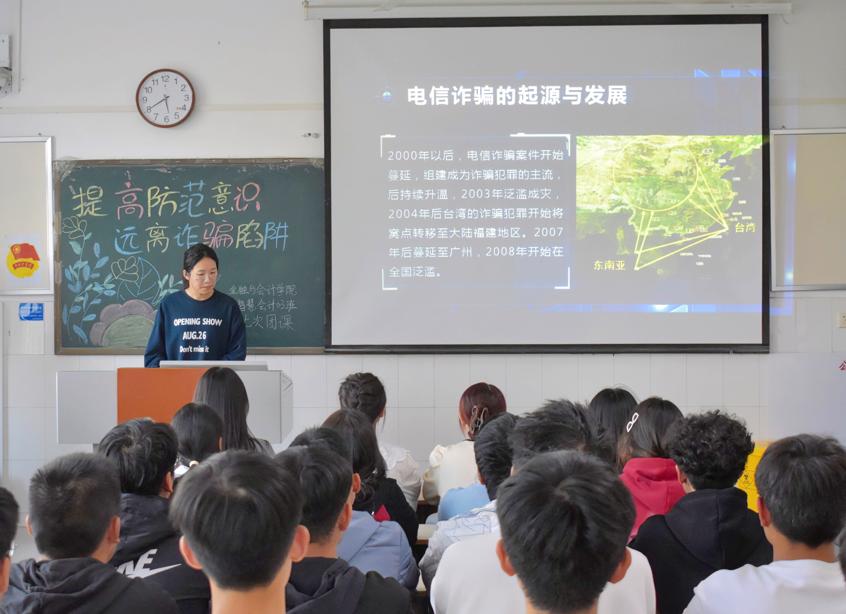 防人之心不可无,反诈意识要强立。随着社会的发展和信息技术的不断进步,不法分子利用手机、固定电话等电信设备发布虚假信息进行诈骗犯罪活动。青年大学生是诈骗犯罪的主要侵害群体,为进一步提升同学们防范诈骗的意识和能力,遏制诈骗案件在校园的发生,williamhill英国中文于10月26日开展了以“提高防骗意识 远离诈骗陷阱”为主题的团课活动。