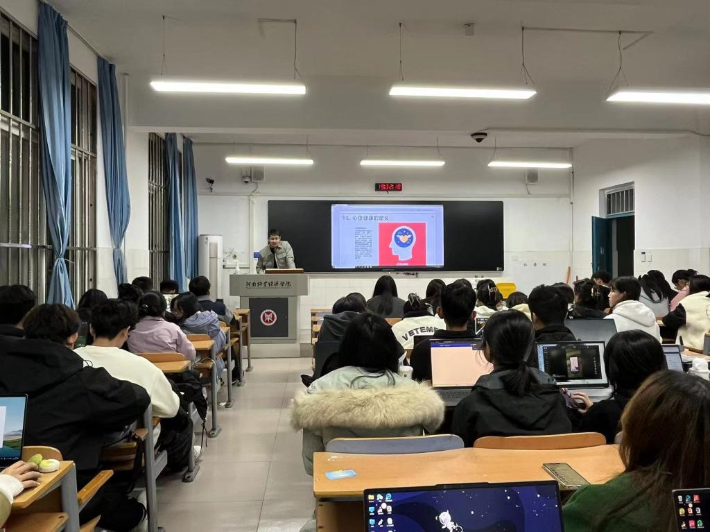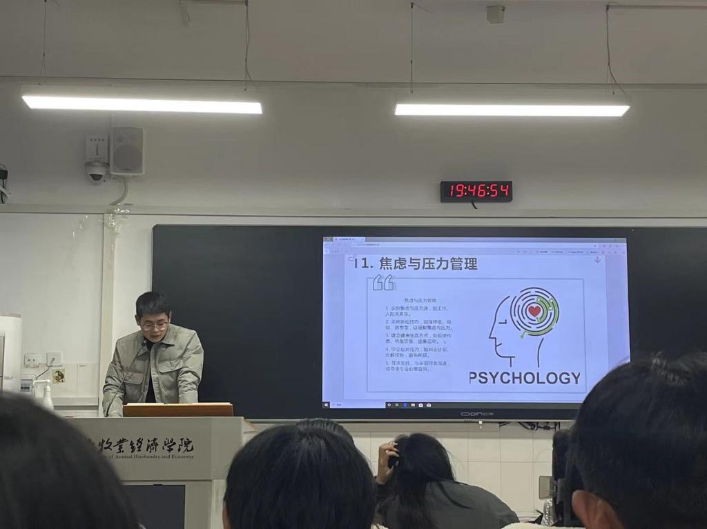 老师们通过生动的案例分析向同学们普及了心理健康的基本知识,包括心理问题的成因、表现与应对方法,以及心理与生理的相互作用等。强调了心理健康在大学生活中的重要性,并鼓励同学们积极面对生活中的困扰和挑战。接着,老师为同学们深入浅出地解析了大学生常见的心理问题及其应对策略,告诉同学们如何调整心态,应对学习、生活和人际关系中的压力,以及如何培养良好的心理素质。同时,他们还分享了一些实用的心理自助方法,如深呼吸、冥想等,帮助同学们在紧张的学习生活中找到放松和舒缓的方式。班会尾声,老师们表达了对23级新生的美好祝愿,希望新生同学们都能够多一些笑容,少一些烦恼,保持心理健康,自信地面对人生,健健康康、快快乐乐地完成自己的大学学业,同时能够提升自身的综合素质能力,不断挖掘潜能,完善自我。