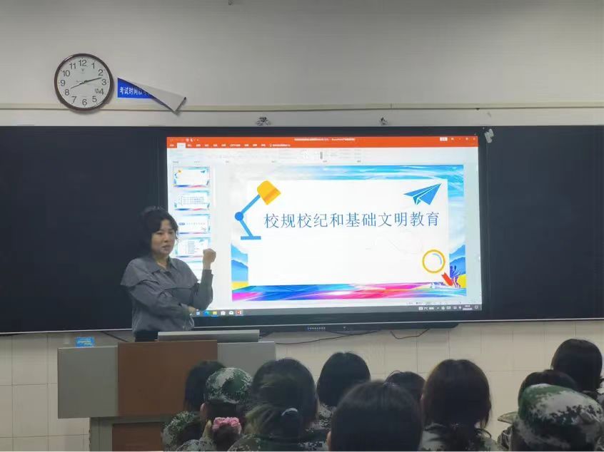 “不以规矩,不能成方圆”,老师首先从“尚严崇实,善知敏行”的校训入手,从学校的各项规章制度出发,通过学生表彰奖励实施办法、学生宿舍管理规定、违纪处分管理办法三大方面深入解读了校规校纪,帮助新生了解学校的各项规章制度,明确学生在学校的学习和生活中应遵守的纪律和应承担的责任。
